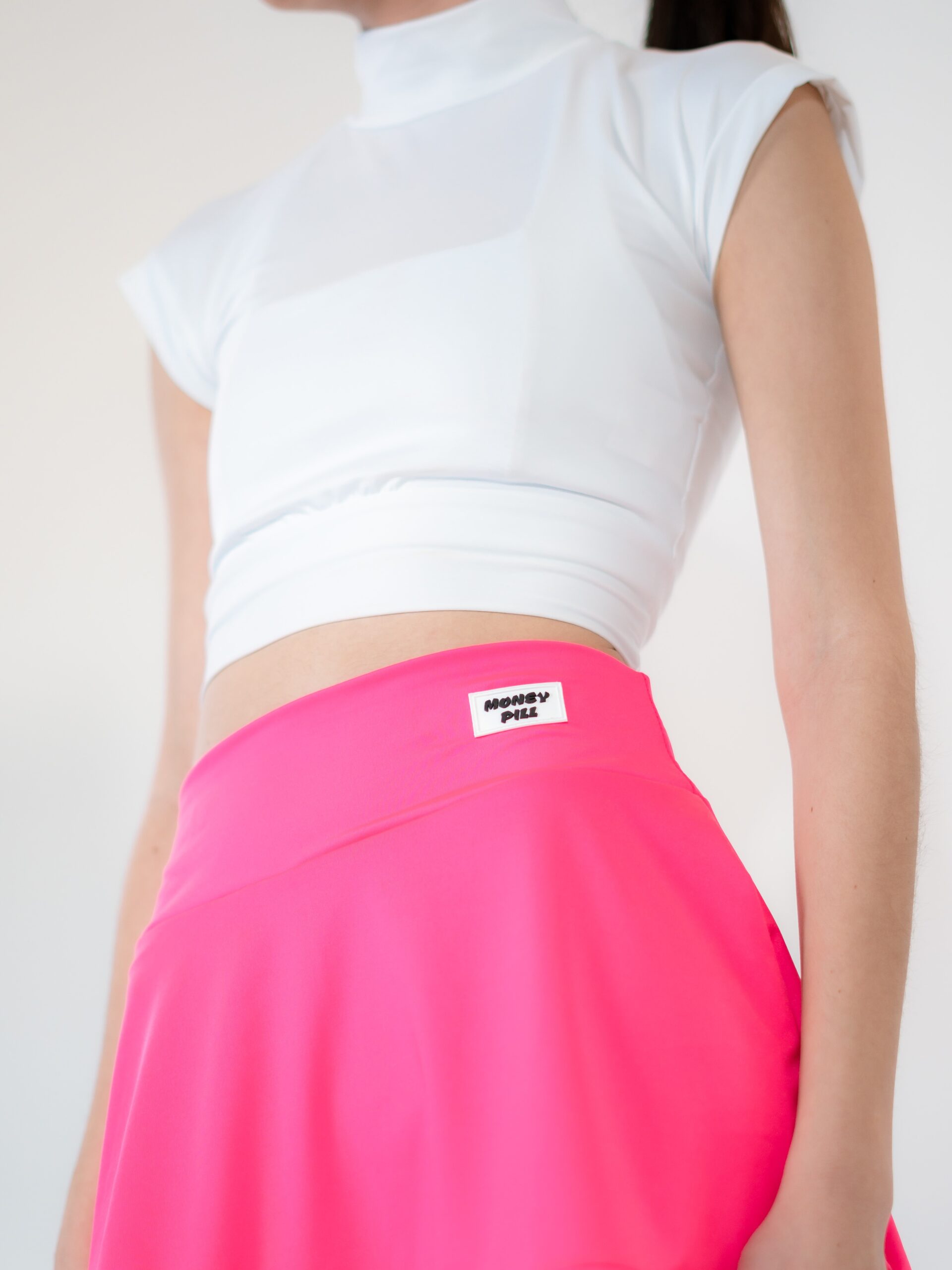 - Corte suelto tipo cropped, con cuello subido estilo mock neck para mayor cobertura sin sofocar.